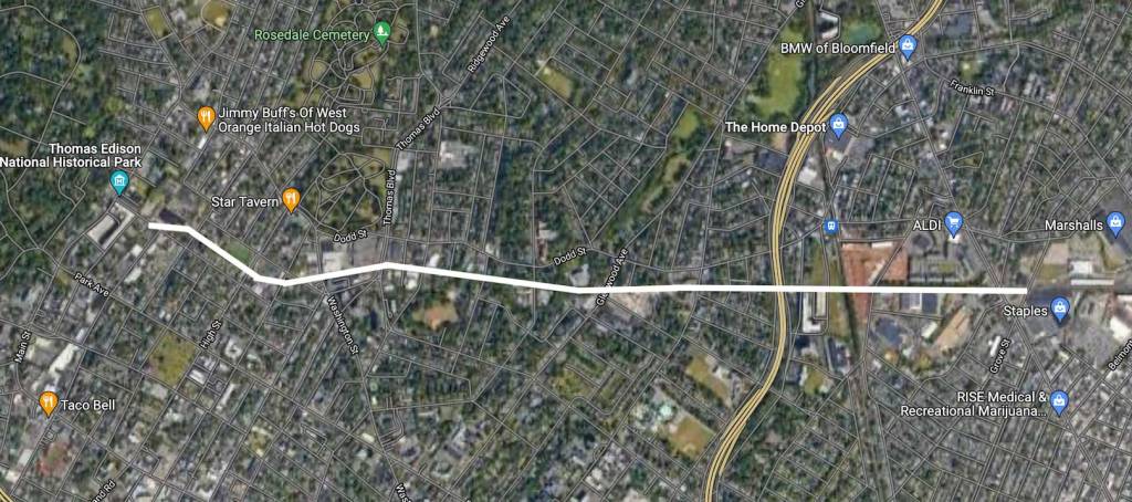 Today, much of the Orange Branch corridor is intact, but is being used as junk yards, surface parking, and abandoned lots. It stretches for about two miles from the light rail station in Bloomfield to the former terminus in West Orange.